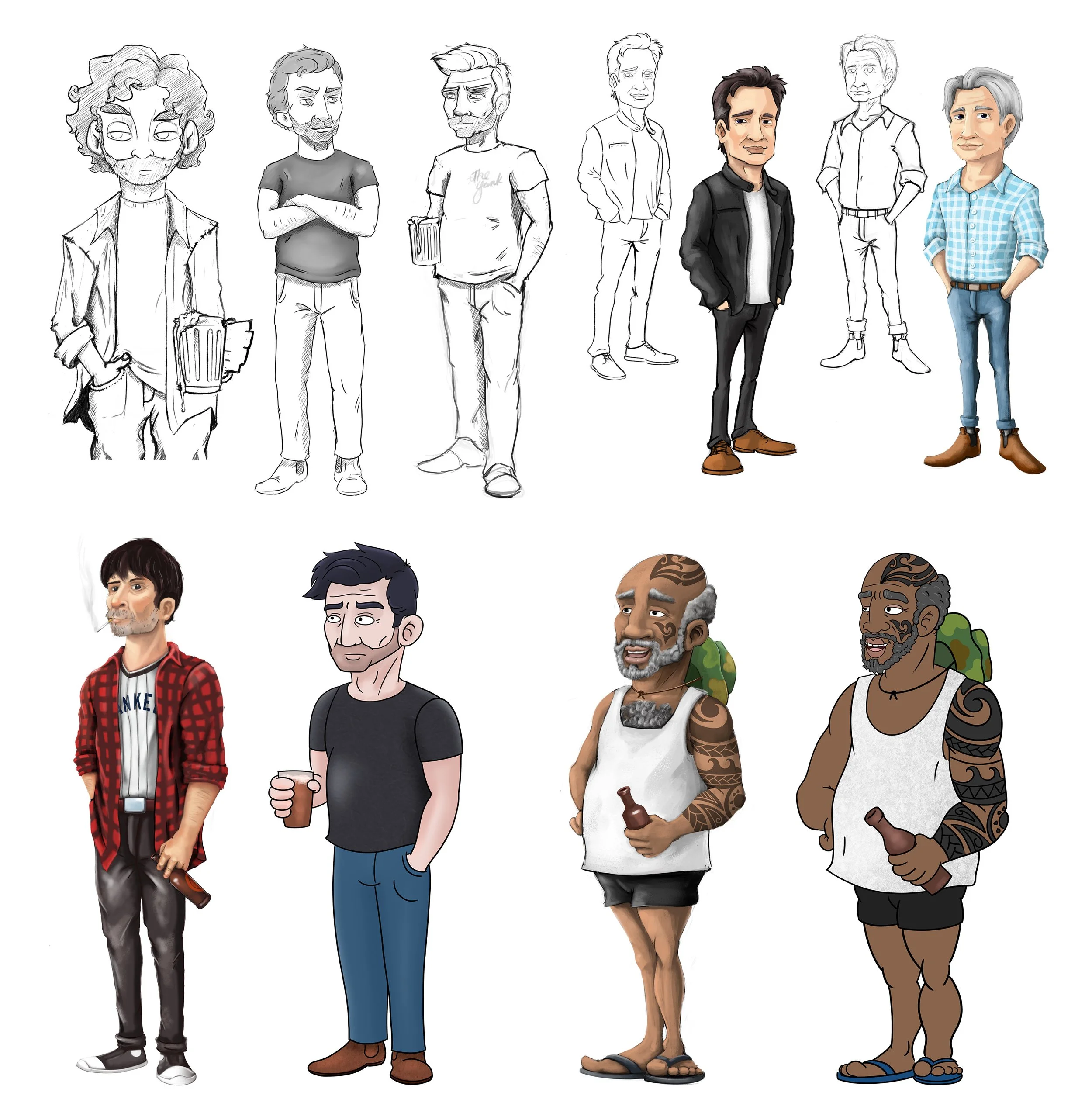 Character poses done in collaboration with another artist. I did some of the characters, colour, environment and composition to the clients specifications.