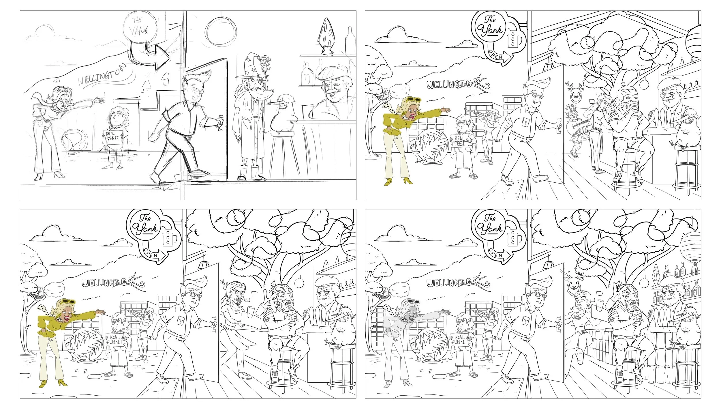 I was involved with the visual development of this new IP pitched as an adult comedy. I created environmental concepts for the show’s locations and explored a variety of styles for the characters based on references given. We eventually landed on a style based on BoJack Horseman. The client wanted a highly saturated, colourful, psychedelic look so the challenge for this project was creating a colour scheme to work for the characters and background. I created options for the background and characters to go to the client, helping him to refine his vision and land on something that worked.